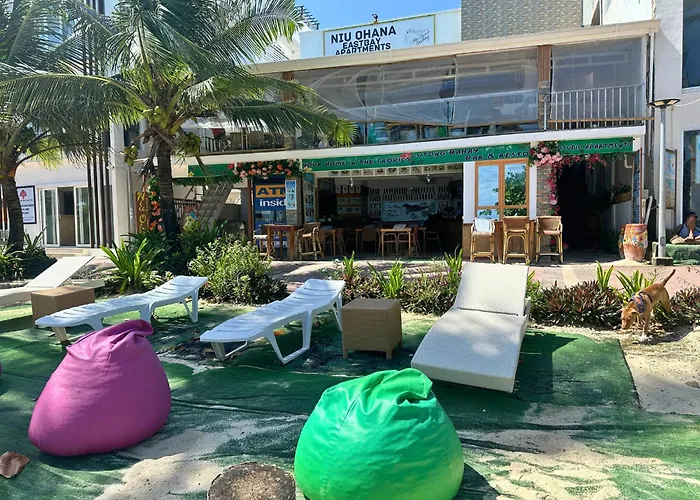 Położony w odległości tylko 5 min piechotą od green yard doskonały hotel jest tylko 10 min piechotą od miejsc zakupów, takich jak Talipapa Bukid. Atrakcje, znajdujące się w bliskiej odległości od Niu Ohana East Bay, to między innymi Biała Plaża na Boracay. Odwiedź Balabag Wetland, który leży 700 metrów od od obiektu noclegowego, i poczuj całkowitą harmonię z naturą Filipin. Skała Willy's znajduje się również w maksymalnie 1 km. Przystanek autobusowy H6 Azalea Hotel jest w odległości krótkiego spaceru od hotelu.